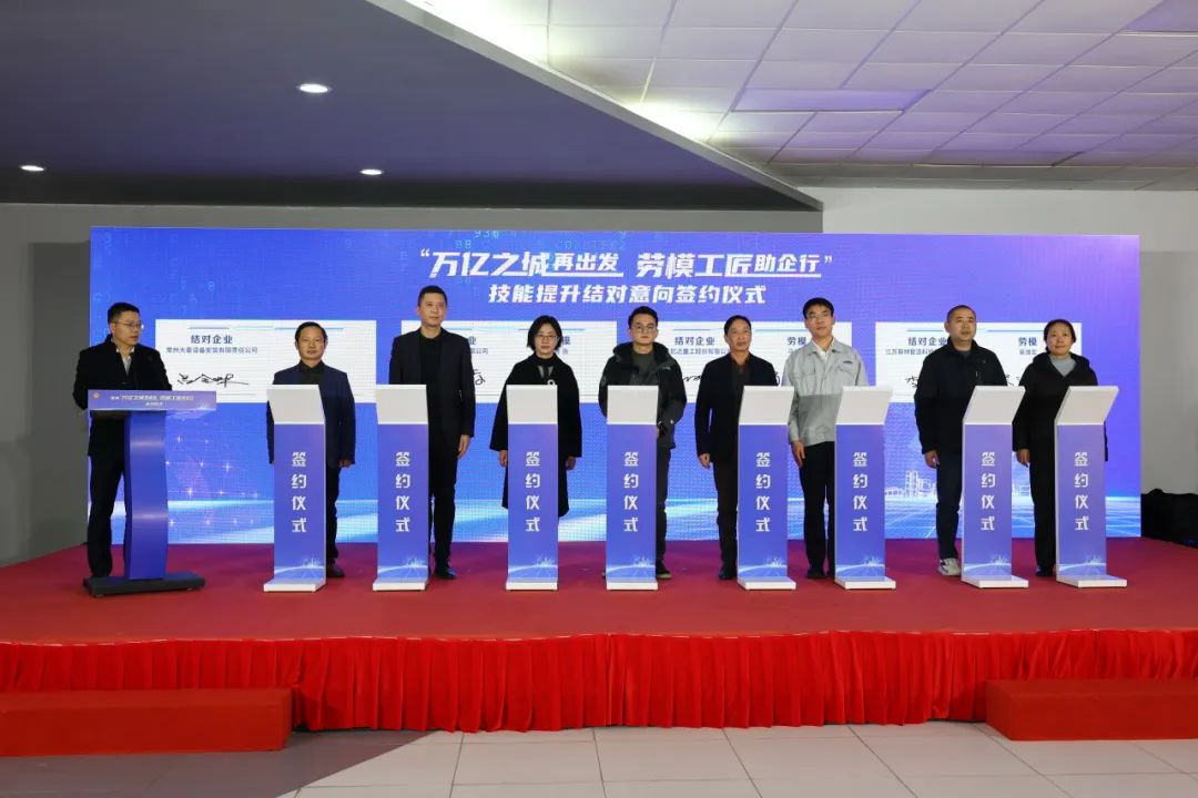 由徐永晨、经浩芳等劳模工匠与常州德盈模塑有限公司、常州衡安建筑劳务有限公司等78家企业结对,开展师徒结对活动,帮助企业职工立足岗位,提升技术技能水平和创新创造能力。