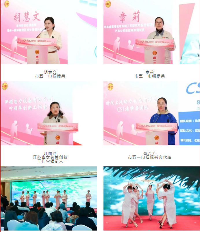 会上,对常州市五一巾帼标兵、标兵岗等个人或单位进行了表扬。4个女职工先进个人和集体分别作职场风采演讲,展示了常州女职工巾帼不让须眉的壮志豪情和在全市建设“新能源之都”、“万亿之城再出发”新征程中的巾帼担当和作为。