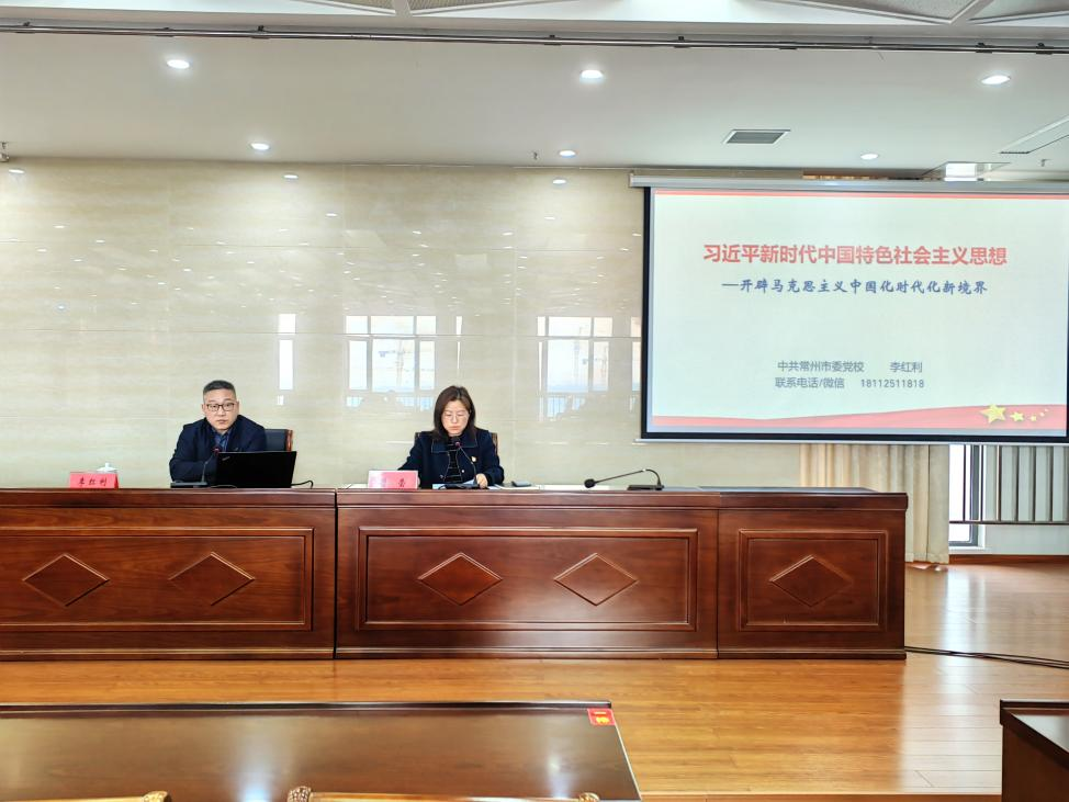 会上,樊莹传达学习全国两会精神、区委党建工作和作风建设专项行动会议精神。引导广大党员深刻认识习近平新时代中国特色社会主义思想为指导,牢牢把握新征程上江苏工作的总要求、总目标、总蓝图,落实“532”发展战略,推进“五大行动”,勇当“两湖”创新区主战场,争做“新能源之都”主力军,全力打造“最美新城区、最强增长极”,聚力建设“美丽常州新样板”,奋力扛起万亿之城新城区担当,在新起点上推进中国式现代化金坛新实践。特邀市委党校教育长、党史党建教研室主任李红利主任以《习近平新时代中国特色社会主义思想-开辟马克思主义中国化时代化新境界》为题授课。李红利用通俗易懂的语言,形象生动、深入浅出的把习近平新时代中国特色社会主义思想讲的很鲜活、很透彻,把党的创新理论从“指尖”传递到大家的“心间”。从而引领广大党员、干部在党课学习中感悟思想伟力、凝聚奋进力量。