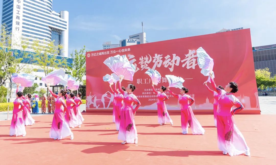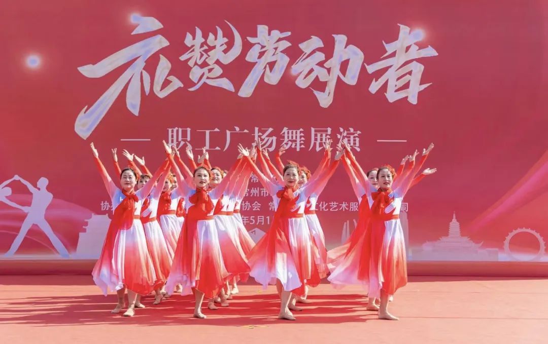 奋楫扬帆启新程、劳动筑梦谱新篇。在“五一”国际劳动节来临之际,“万亿之城再出发 万众一心创未来” 礼赞劳动者职工广场舞展演活动隆重举行。本次活动由常州市总工会主办,常州市工人文化宫承办,常州市体育舞蹈运动协会、常州中吴文化艺术服务有限公司协办。来自全市的12支职工广场舞团队齐聚文化宫广场,用舞蹈展现全市劳动者的新时代新风采,激励全市广大职工在万亿之城再出发的新征程上,凝心聚力、拼搏奋斗、 勇争一流,为加快发展新质生产力、书写好中国式现代化常州答卷作出更大贡献。