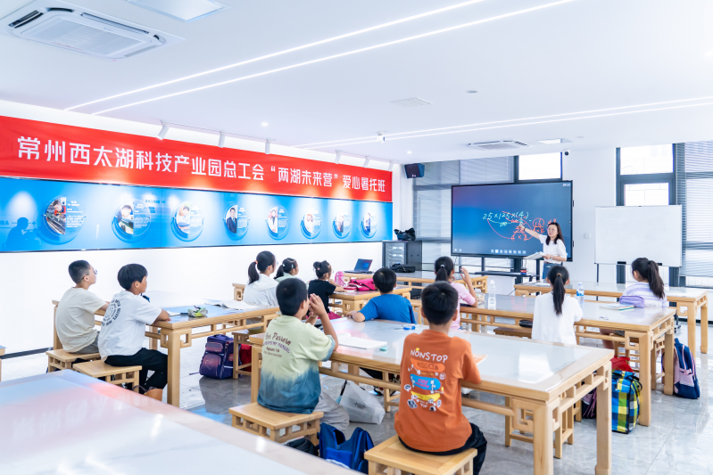 8月9日,西太湖科技产业园“两湖未来营”爱心暑托班闭营。暑托班为期一个月,来自园区企业的40名职工子女免费参加了分层级暑托服务。暑托班针对孩子们成长特点和兴趣爱好,设置了丰富多彩的课程,包含手工课、绘画课、音乐课、科学实验课、体育课、安全教育课堂等。除此以外,还开展了三次户外拓展研学活动,孩子们一起走进西太湖公共安全馆,“沉浸式”学习安全知识;走进滆湖书院,聆听安全知识小讲座,参与安全知识有奖竞答、水果分享会,亲手绘制草帽;走进合和圆缘中央工厂,参观自动化智能生产线、制作曲奇饼干。