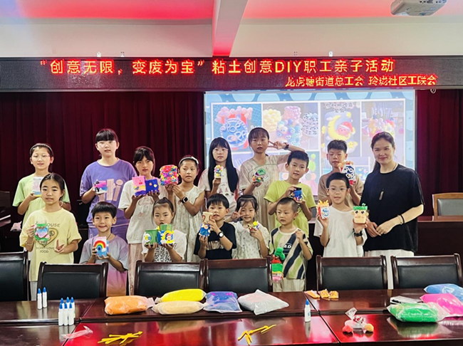 为丰富辖区职工子女的假期生活,激发孩子们的创作力、想象力和动手能力,8月9日上午,龙虎塘街道玲珑社区工联会暑托班组织开展“创意无限 变废为宝”黏土创意diy职工亲子活动,20组职工家庭以黏土为媒介,利用废旧空瓶制作笔筒摆件,共赴开学季。
