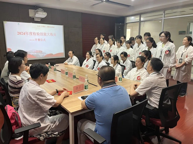 副总经理周翔、质量副总监唐正、工会副主席李宏、质量部长陶翎、qc主任夏莹萍等领导出席了开赛仪式。开赛仪式上,副总经理周翔指出:在工作之余进行岗位大练兵是非常有意义的,qc本身是一个生化药品检验操作的岗位,要求能够快速准确的完成待检样品的检验工作;本次技能竞赛要在遵守日常sop要求的基础上体现出个人的操作技能,体现出操作水平的差异,更好的发挥主观能动性,赛出技能闪光点!