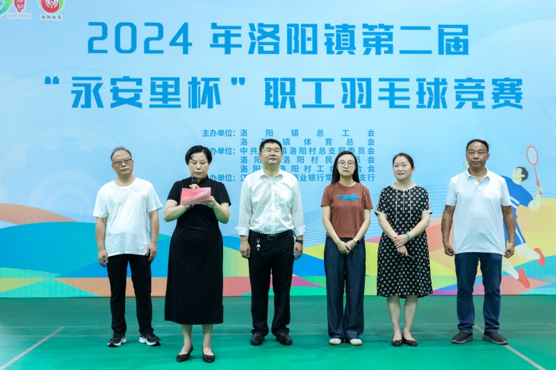 近日,由洛阳镇总工会、洛阳镇体育总会联合主办的2024年洛阳镇第二届“永安里杯”职工羽毛球赛在洛阳镇全民健身中心羽毛球馆举行。洛阳镇副镇长邱添,镇总工会主席费叶青,镇体育总会会长马晓峰,社会事务办公室党支部副书记许小林,洛阳社区居委会主任支华娟等出席活动。
